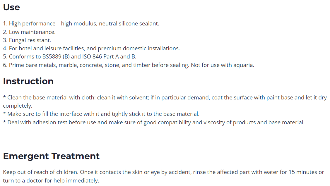 KASTAR 737 Neutral Sanitaryware Silicone Sealant